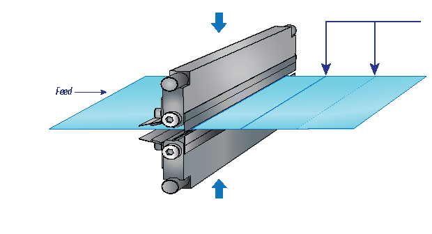 Creasing and scoring are terms that are often used in place of one another but the truth is that they are quite different. Scoring is done with a rotary wheel that applies acute pressure to stretch paper fibers along a fold line. Creasing provides a much more pronounced affect by using an anvil and dye to strike the sheet.