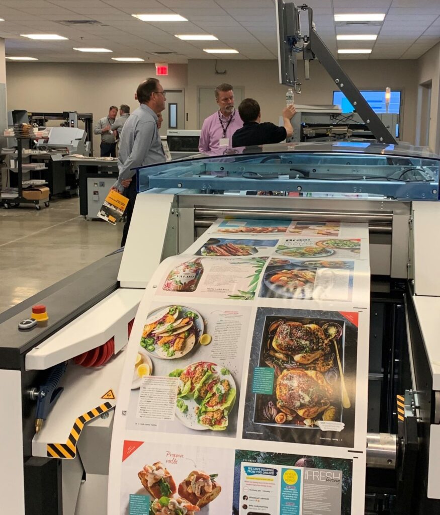 The event’s main feature was the Horizon BQ-500 Perfect Binder with case binding options. Attendees also enjoyed the Hunkeler Horizon Roll-to-Saddlestitch line. This roll-to-saddlestitch was an exceptional production line shown at the event. It had Hunkeler’s Generation 8 Unwinder combined with Horizon’s iCE StitchLiner Mark V Saddlestitcher. This display provided everyone a glimpse into the high production rates possible with such a dynamic pairing.
