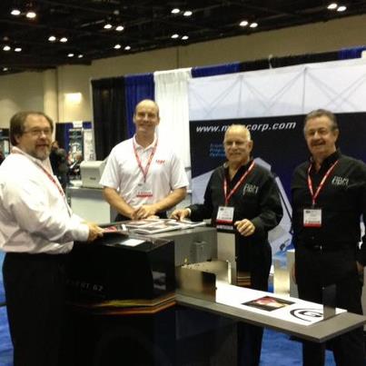 Alan Mandel & German Camacho from Automated Business Machines of Miami join Rudi & Ryan around the Aerocut G2 at the GOA show.