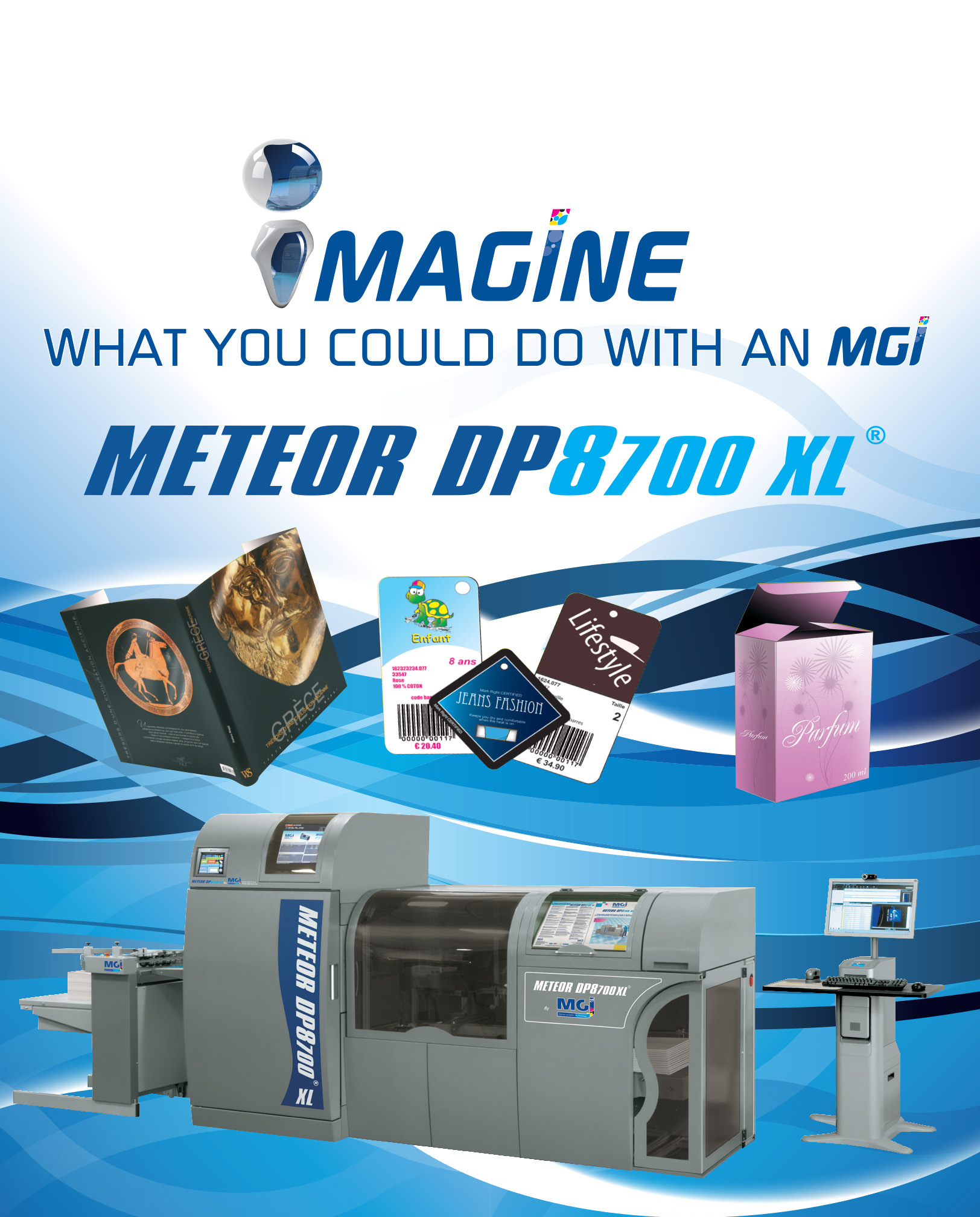 The Meteor DP8700 XL is a Multi-Substrate XL Digital Press for Papers, Plastics, and Envelopes. MGI is the world leader in digital printing and finishing. The Meteor DP8700 XL is the perfect example of innovation in motion. Meteor DP8700 XL provides an efficient workflow with the Fiery RIP – allowing you to manage both your workflow and colorspace.