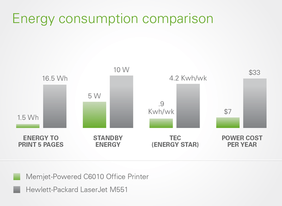 But the benefits of Memjet Formula Inks don’t end there. Our inks also present significant energy savings because there is no need to heat toner typically found in laser printers. And since Memjet Formula Inks are not energy-curable, they don’t need to dried with “vampire lamps” to “cure” inks. In one quick, efficient pass, printed materials emerge ready to ship.