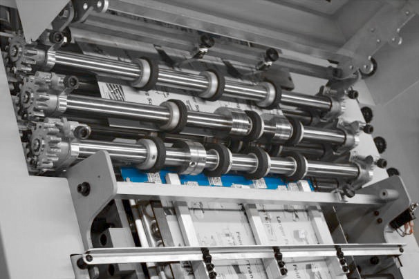 On the BAUM 20 VFM, the stocks stay straight and flat as they travel through the slitter shafts versus the back-bending of a buckle folding machine as the heavier sheets try to conform to the radius of the folding rollers.