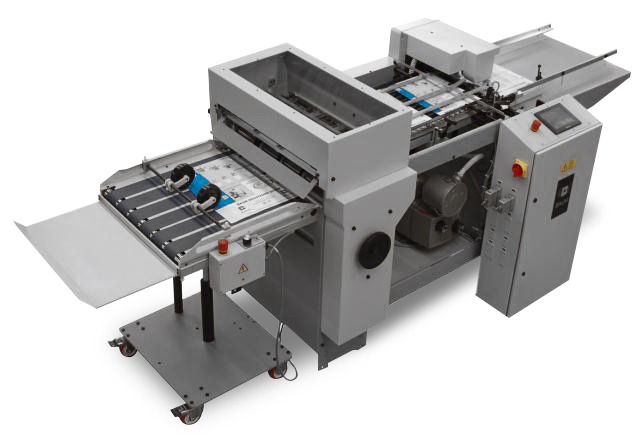 The VFM 20 can handle light to heavy weight stocks. One big advantage of the VFM 20 series is the ability to score, slit and perforate heavier stocks without creating any curl in the sheet that is found when trying to run heavy stocks through a buckle folder to perform the same tasks.
