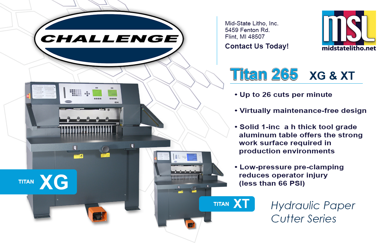 Don’t forget to subscribe to our blog for additional Tips & Advice! Questions about our Challenge Titan Series Cutters? Contact Mid-State Litho at 1-800-343-4231 or at 810-238-7370. Additional information can also be obtained by contacting our Sales Department at sales@midstatelitho.net or visiting MSL online at midstatelitho.com