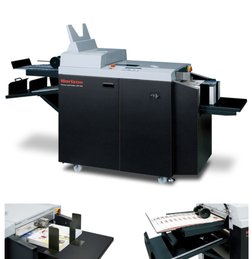 | Automation will FREE you from Wasted Time! This summer the market has changed an awful lot! Production centers are learning how to cross-train and get the most out of every machine they own. Owners who have been investing in automation and modern equipment are enjoying the ability to do more with less while some struggle to keep up while using antiquated equipment. Automation is one of our primary focuses in the product lines that we sell. The Horizon philosophy is for complete touch screen control. Running high-end equipment can be as easy as using an app on your smartphone. Operators are guided and instructed through complex processes right on the equipment screen. The setup process asks all the right questions about what you’re doing and what you’re starting with. The logic is built into the software. The machines set themselves up! Stop wasting precious time changing over sizes. Optimize your change-overs with automated setups. Horizon equipment makes it simple to do complex production tasks without a whole lot of knowledge. Best of all, you’ll still produce that top level of quality that your customers expect. Easy to use equipment was a nice perk in the past. In today’s market it is an absolute must. Keeping production equipment operational even when there’s a shortage of skilled labor is something people with Horizon equipment know all about. Our customers who invested in automation have had a much easier time during this unique time in our industry. Old equipment requires a lot of expertise and a bit of an artisan touch. That extra time and limited talent pool makes it so ill-equipped production sites have a difficult time keeping up with demand or making money when they do. The CRF-362 is a Creasing and Folding machine. It has two dies, one of which can be swapped out for a perforation die. The machine is fully optimized for the task. The fold rollers are huge and finished pieces will lay perfectly flat. There is a secondary delivery section for creasing-only jobs to bypass the fold section; something that plagues other combination machines. Operators can make tiny adjustments to the fold or the crease right on the touch screen panel. Adjustments are made with a simple button instead of having to stop and think about which fold gate to adjust. The difference between running an old folder and a modern Horizon CRF-362 is night and day. |